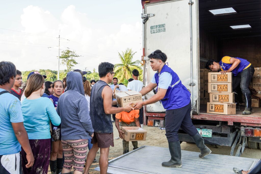 To date, over 5,000 relief items have reached families in Cebu City, Municipality of Compostela and the Municipality of Liloan. Each pack contains drinking water and essential food items, including five kilograms of rice, assorted canned goods (beef loaf, pork and beans, corned beef, tuna, and sardines), and 3-in-1 coffee.